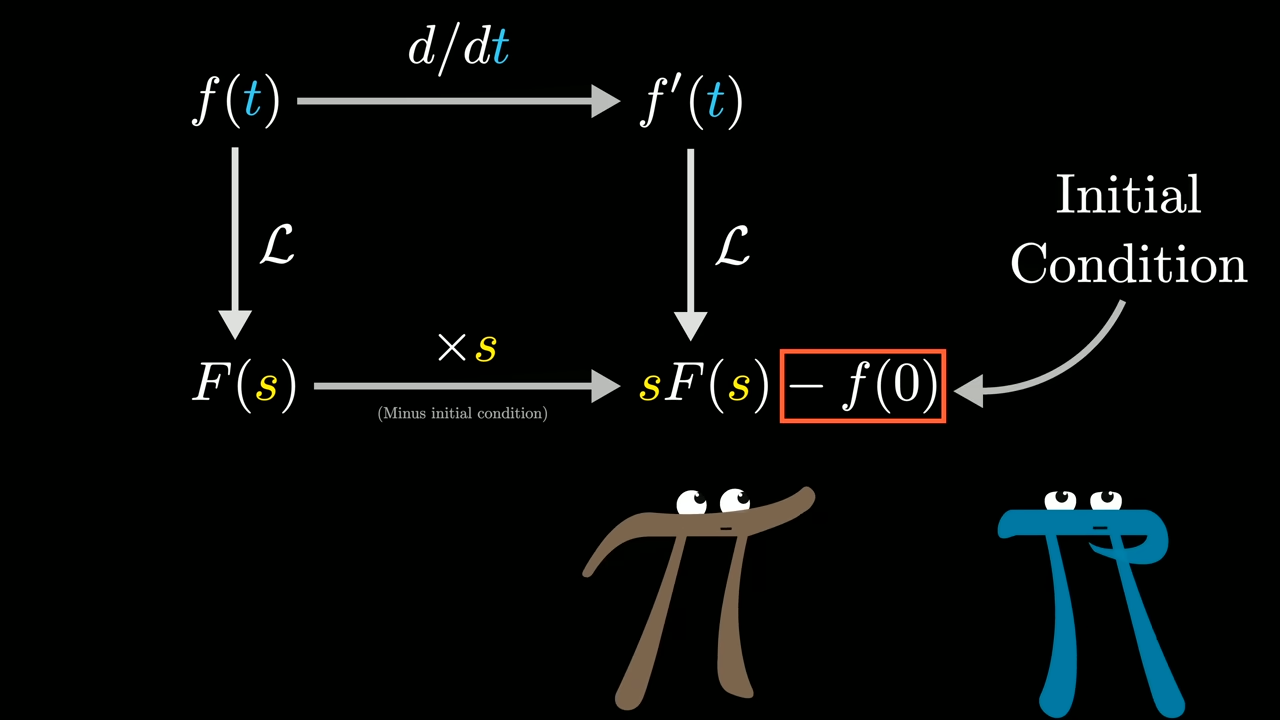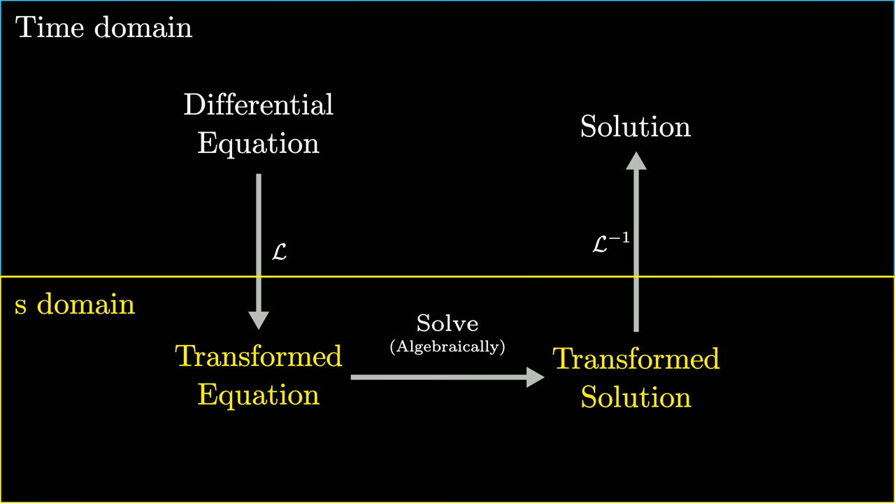 그래서 미분 방정식을 풀기 어려우면 이걸 라플라스 변환을 사용한다. 요소들이 지수 함수로 쪼개졌기 때문에 미분하는 게 아주 쉬워진다. 그래서 여기서 해를 구한 다음 다시 라플라스를 반대로 돌리면 원래 함수의 미분 방정식을 쉽게 풀 수 있다.